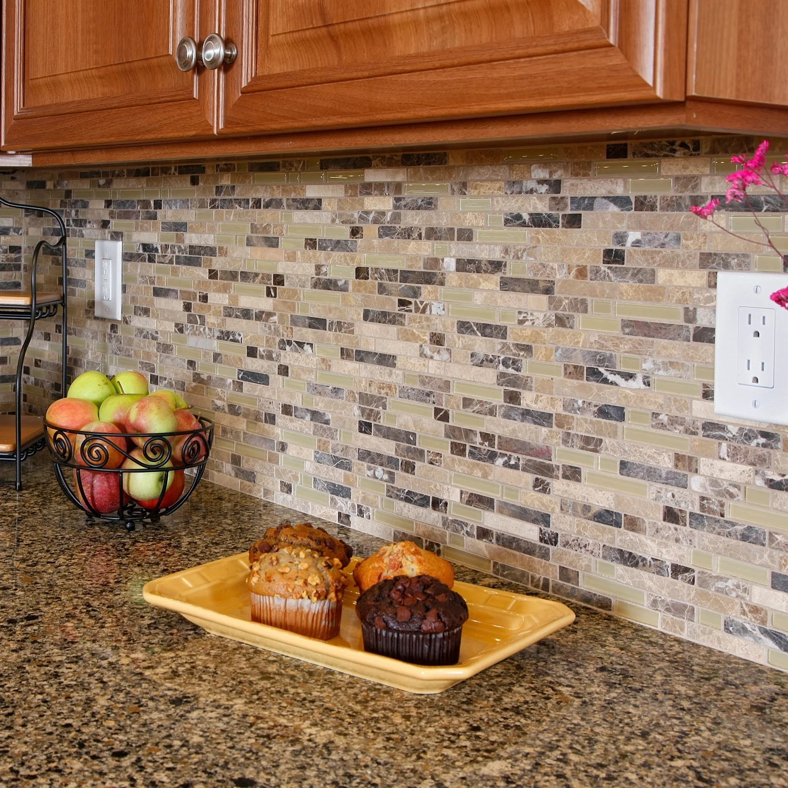 Web The backsplash subway tiles that are chosen according to the busy granite pattern and color create both a harmonious and dynamic look. Glass is sleek modern and low-maintenance making it a popular option for a backsplash. It is available in sheets or tiles.